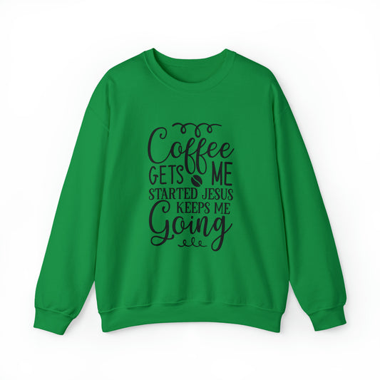 Caffeine Gets Me Going Jesus Keeps Me Going Unisex Heavy Blend Crewneck Sweatshirt