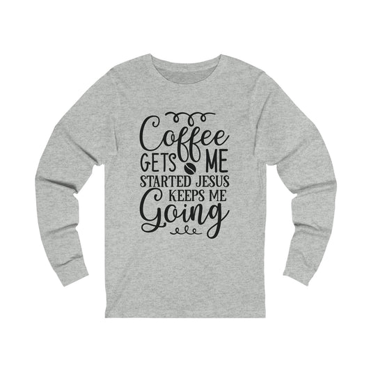 Coffee Gets Me Going Jesus Keeps Me Going Unisex Jersey Long Sleeve Tee